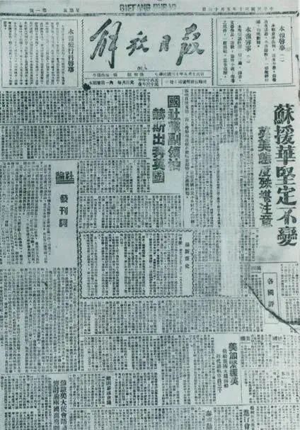 图为1941年5月16日在延安创刊的中共中央机关报《解放日报》。