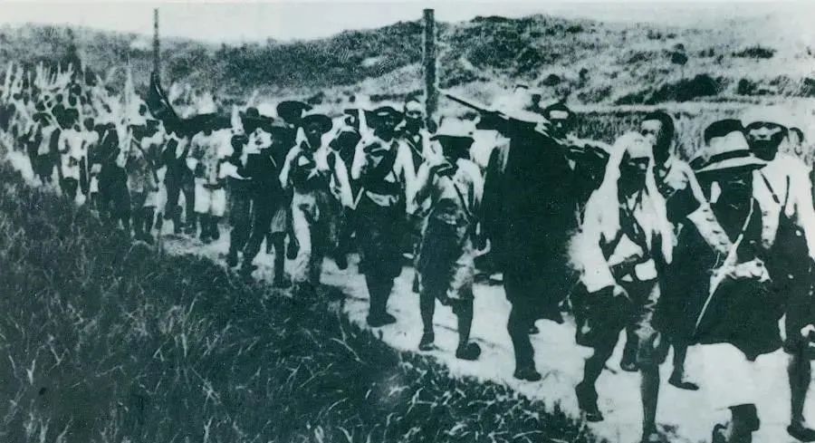 1931年5月16日至31日,红一方面军在毛泽东、朱德指挥下,连续打了5个胜仗,歼敌3万余人,缴枪2万余支,打退了国民党军队的第二次“围剿”。图为行军中的红军。