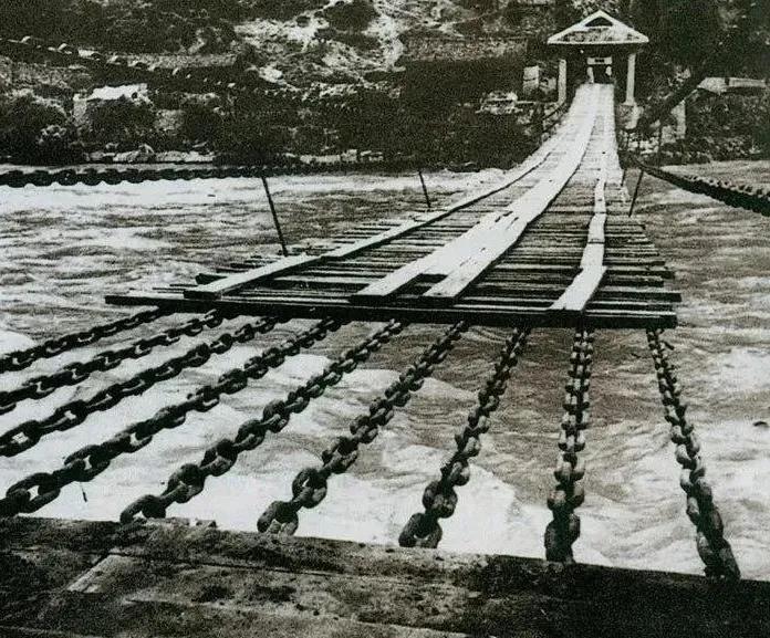 1935年5月29日,中央红军左纵队先头部队在泸定桥西头发起夺桥战斗,顺利抢占大桥。图为泸定桥。