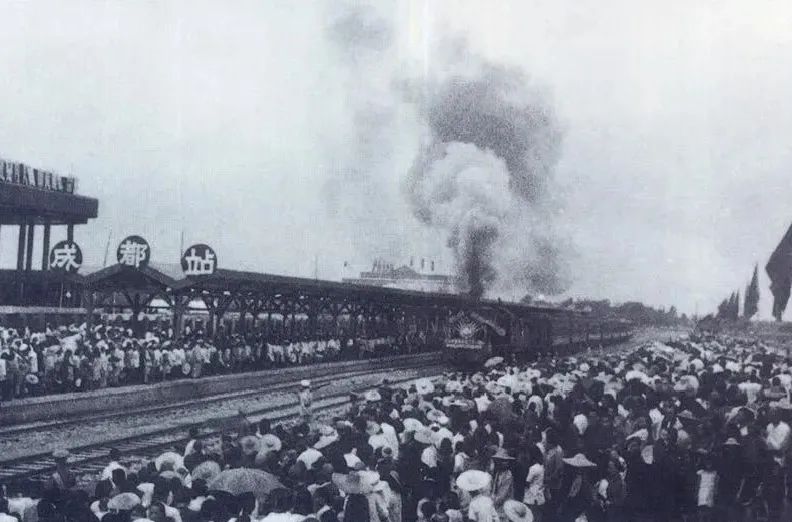 新中国成立后,在短短的两年内就建成了成渝铁路。图为1952年7月1日由成都开出的第一列火车。