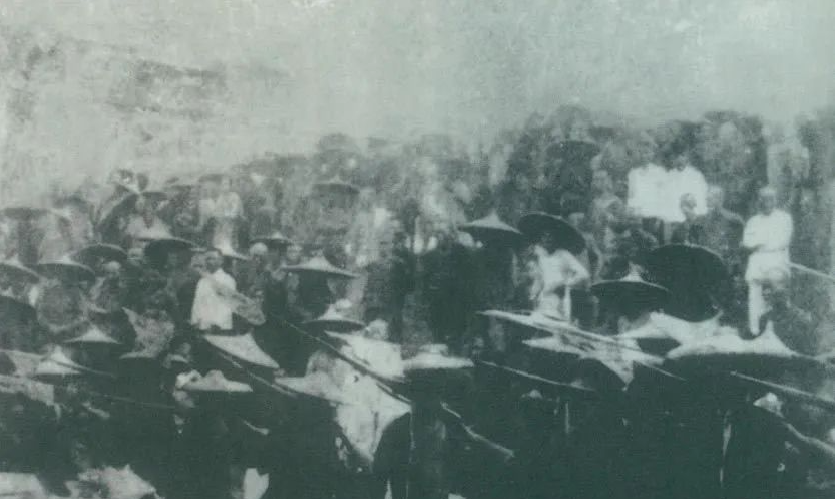 1926年7月9日,国民革命军开始北伐。两天后,北伐军的先头部队叶挺独立团攻占了长沙。然后向武汉进攻。一路上,迅猛发展的农民运动有力地配合了北伐战争。在湖南、江西、湖北,农民运动越来越引人注目。这是支援北伐战争的农民自卫军。