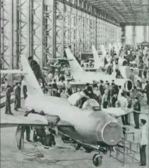 1956年7月19日,国产第一架喷气式战斗机在沈阳首次试飞成功,标志着中国具备了独立研制空军武器装备的能力。图为国产第一批喷气式飞机即将出厂。
