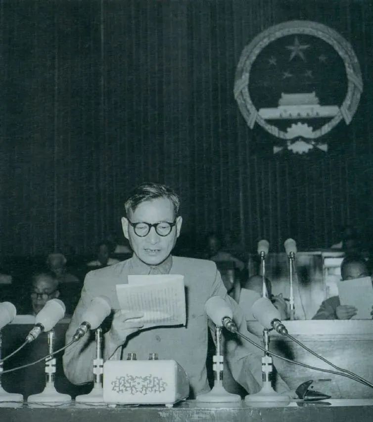 1955年7月,陈云在一届全国人大二次会议上作坚持和改进粮食统购统销工作的报告。