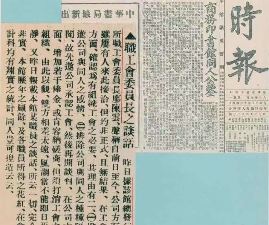 1925年8月24日,上海《时报》刊载的陈云在商务印书馆大罢工第二天发表关于争取组织工会自由作为取得这次罢工斗争胜利的最基本条件的谈话。