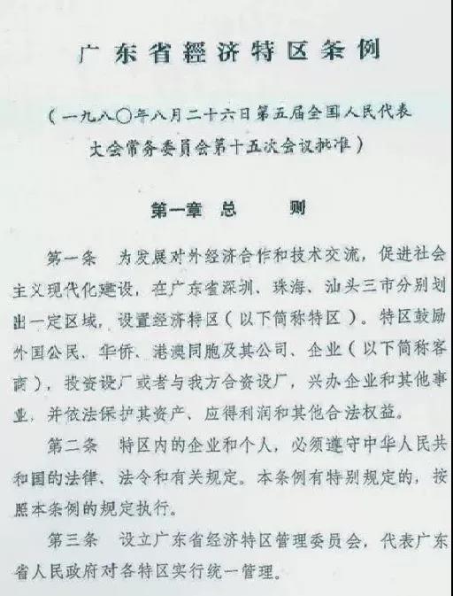 1980年8月26日,第五届全国人大常委会第十五次会议批准《广东省经济特区条例》。