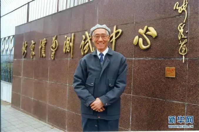 上世纪90年代,陆元九在北京惯导测试中心调研时在门前留影