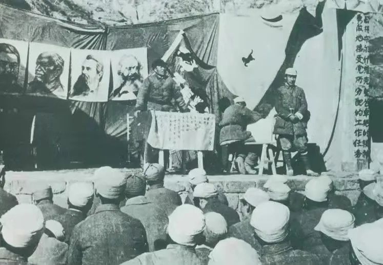 ◆1942年11月,朱德在延安军事学院第一期学员毕业典礼上讲话,勉励大家发扬党的实事求是、密切联系群众的优良传统。