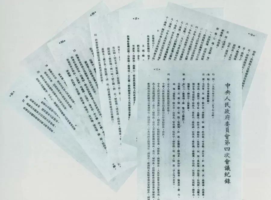 ◆1949年12月2日,中央人民政府委员会第四次会议决议,每年10月1日为中华人民共和国国庆日。图为中央人民政府委员会第四次会议记录。