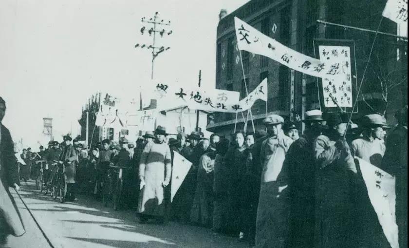 ◆1935年12月9日,中国共产党领导北平学生掀起声势浩大的抗日救亡运动,并迅速波及全国,形成抗日救国的新高潮。图为游行队伍。