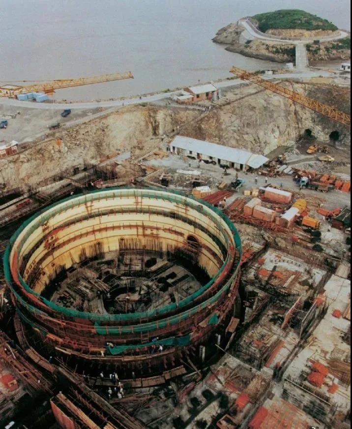 1991年12月15日,中国第一座自行设计、自行建造的核电站——秦山核电站并网发电。图为建设中的秦山核电站。