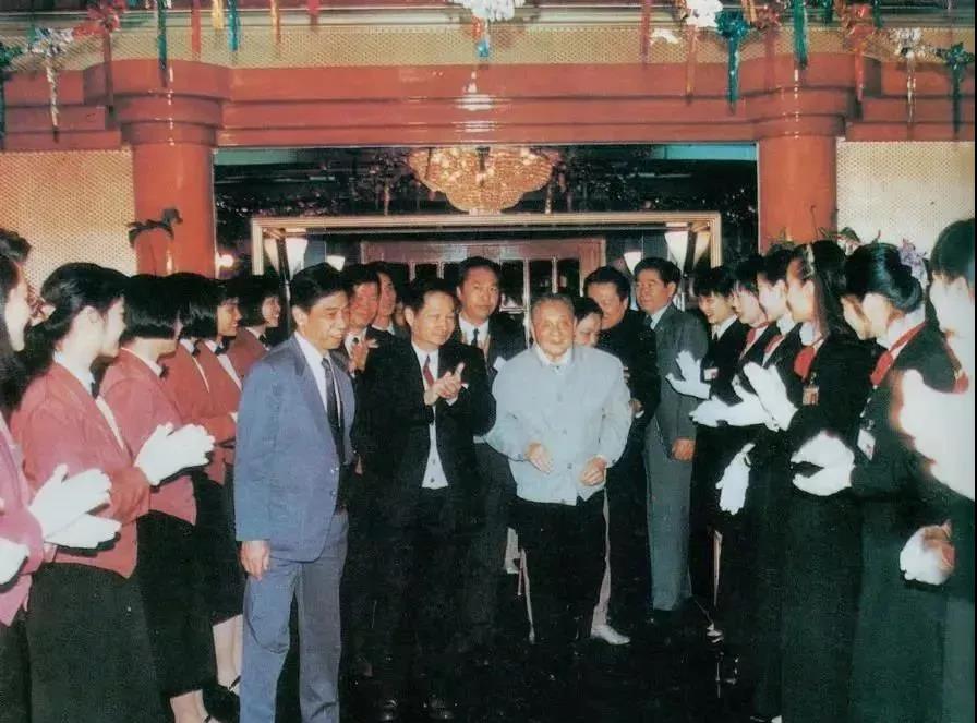◆1992年1月20日,邓小平来到深圳国贸大厦,受到大厦员工的热烈欢迎。