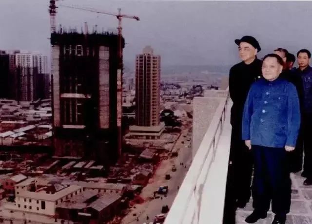 ◆1984年1月24日,邓小平在深圳国商大厦楼顶俯瞰建设中的深圳全貌。