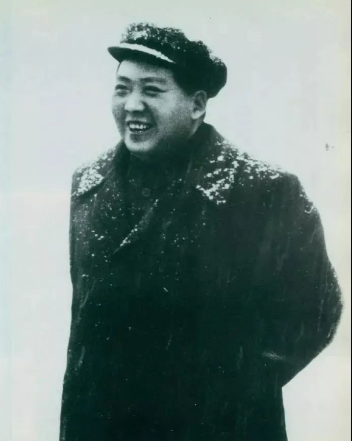◆毛泽东于1953年2月16日第一次来武汉。图为毛泽东赴汉口途中下车喜迎春雪。