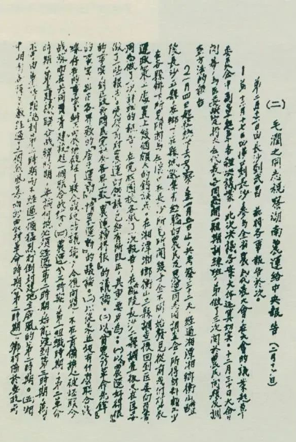 ◆1927年2月16日,毛泽东就考察湖南农民运动情况给中共中央的报告。